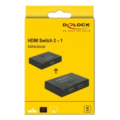 Denne HDMI switch fra Delock er en manuel bidirectional switch til at forbinde forskellige enheder med HDMI-port. Denne switch tilbyder to forskellige anvendelsesmuligheder: