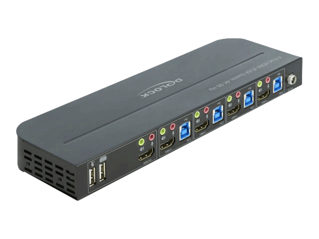 Denne KVM switch fra Delock giver dig mulighed for at forbinde fire computere med HDMI-udgang til én HDMI-skærm.