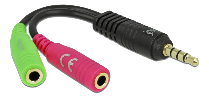 Denne adapter fra Delock giver dig mulighed for at tilslutte et almindeligt headset med to 3,5 mm stereo jack hanstik med standard 3-benet pin-konfiguration til din smartphone eller tablet med en 3,5 mm 4-benet stereo jack hunport. Du skal blot tilslutte headsettets stik til de farvekodede hunporte på adapteren.