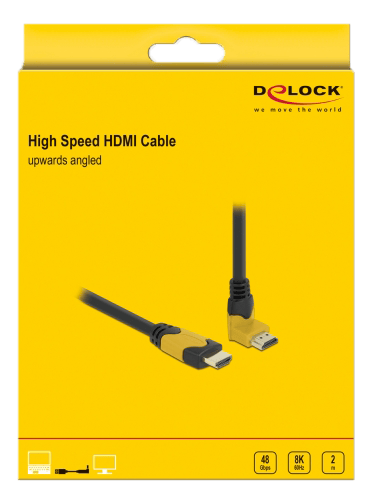 High speed HDMI kabel 90° opad vinklet, 48 Gbps, 8K 60Hz, 2 meter, sort - Delock