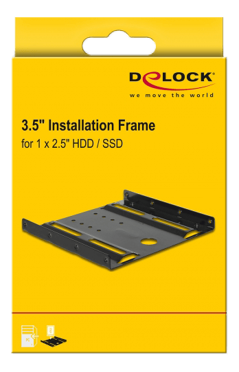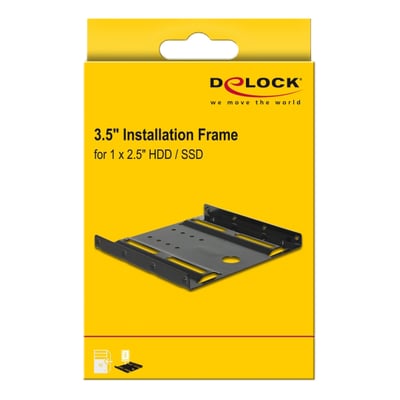 Med denne installationsramme fra Delock kan du nemt montere et 2,5-tommers drev, såsom en harddisk (HDD) eller en solid-state drive (SSD), i et ledigt 3,5-tommers drevbays i din computer. Rammen sikrer en stabil og sikker installation af dit drev.