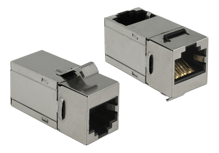 Keystone modul RJ45 hun > RJ45 hun, Cat.6, 90°, sølv - Delock