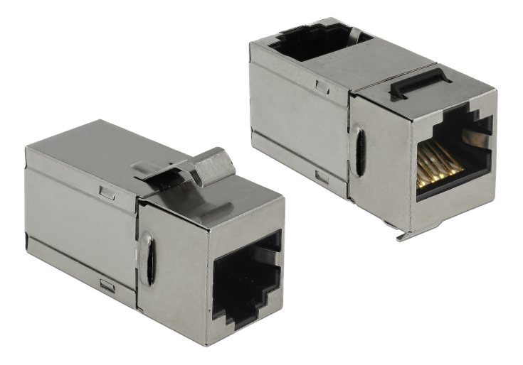 Dette modul fra Delock kan bruges til at forlænge twisted pair kabler. Med sine standardiserede dimensioner kan den bruges til nem snap-in montering i f.eks. et Keystone patchpanel, frontplade eller overflademonteringsboks.