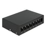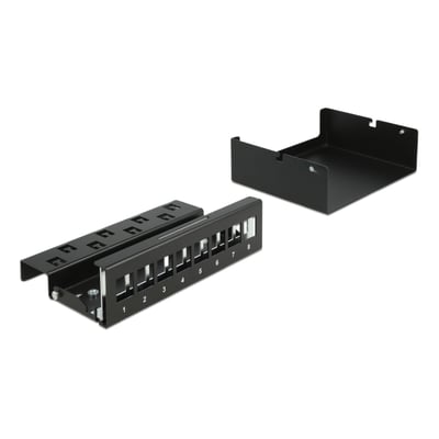 Dette patch panel fra Delock kan bruges som samledåse på væggen eller i kabinetter. Derudover medfølger clips til DIN-skinne montering. Passer til 8 Keystone moduler.