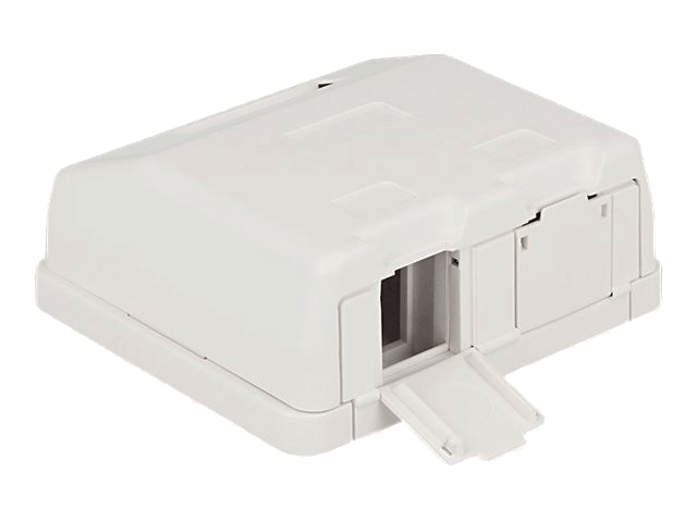 Denne tomme boks fra Delock kan bruges som samledåse på væggen eller i kabinetter. Med sine standardiserede dimensioner er den egnet til nem snap-in montering af to Keystone moduler.