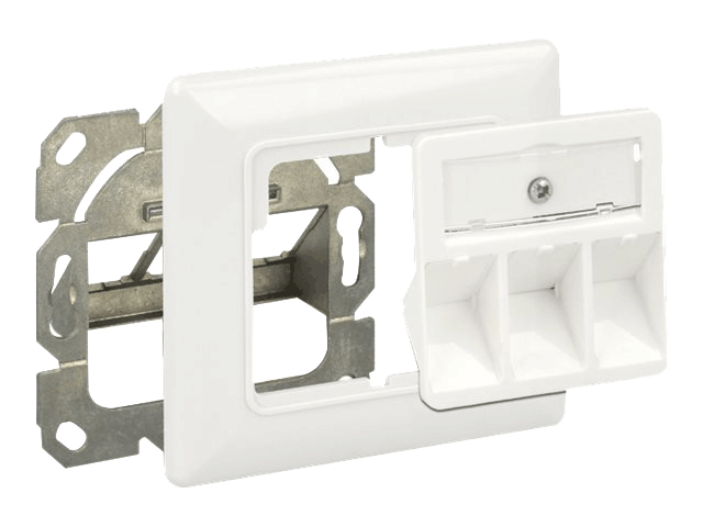 Dette vægudtag fra Delock kan installeres i væggen eller på en dåse med 60 mm monteringshuller. Med sine standardiserede dimensioner er det velegnet til nem snap-in montering af 3 Keystone moduler.