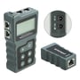 Med denne kabeltester fra Delock kan ledningsforbindelsen i netværkskabler testes hurtigt og nemt. Resultaterne vises tydeligt på det belyste LCD-display.