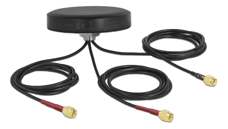 Denne antenne fra Delock muliggør brug af forskellige LTE- og WLAN-bånd indendørs og udendørs. Den er fuldt kompatibel med GSM, UMTS, LTE, ZigBee, DECT, Z-Wave, NB-IoT, Dual Band WLAN, Bluetooth, ISM, MIMO og LoRa 868 MHz / 915 MHz.