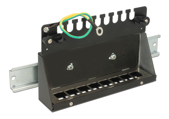 Patch panel med 8 porte til keystone moduler. Skærmet og i sort farve.