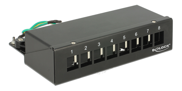 Patch panel, 8 porte, skærmet, sort