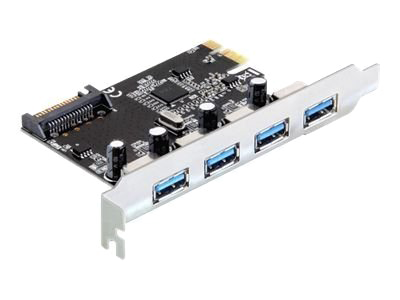 PCI Express-kortet fra Delock udvider en pc med fire eksterne USB 3.2 Gen 1-porte. Forskellige USB-enheder såsom dockingstationer, kortlæsere, eksterne kabinetter osv. kan tilsluttes.