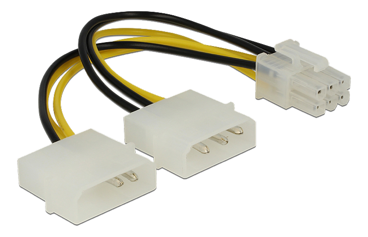 Dette Delock strømkabel på 15 cm giver strøm til PCI Express kort, f.eks. PCI Express grafikkort.
