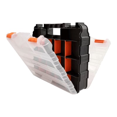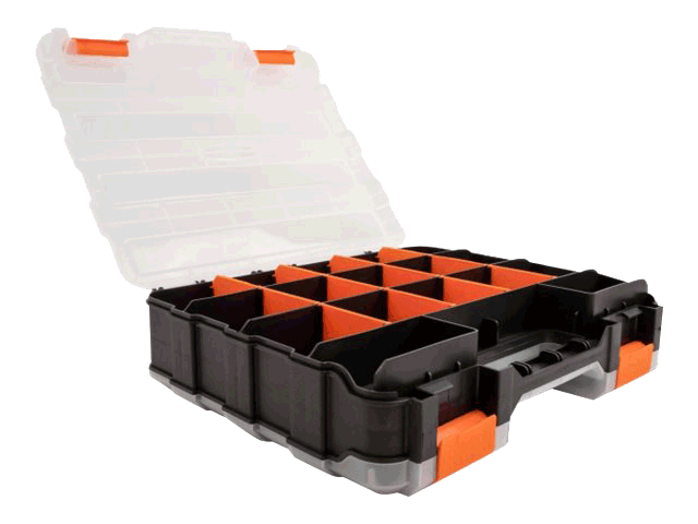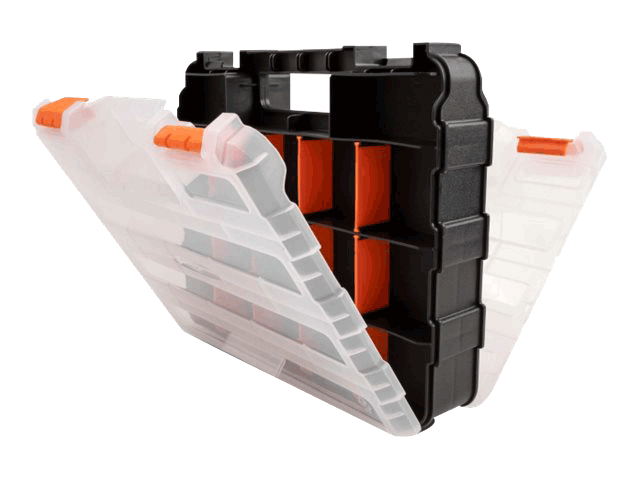 Praktisk sorteringsboks fra Delock til opbevaring af værktøjstilbehør, skruer og smådele. Sikrer overblik, orden og beskyttelse. Indholdet er let synligt.