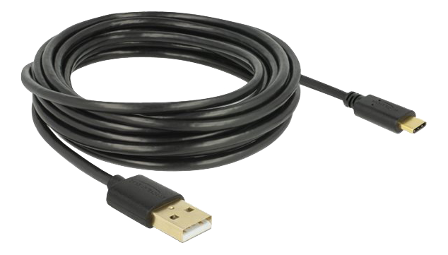 Dette USB-kabel fra Delock forbinder en enhed med USB Type-C til en PC eller bærbar med en ledig USB-port.