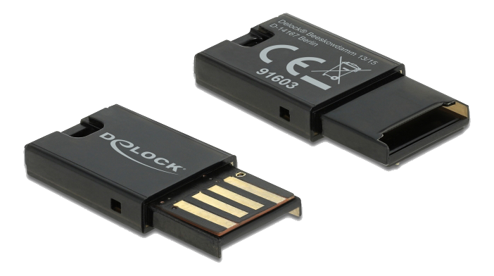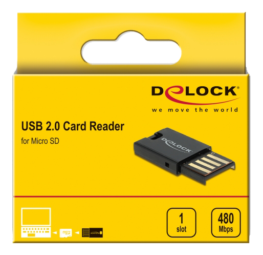 Denne kortlæser fra DeLock kan bruges til at læse og skrive Micro SD hukommelseskort. Kortlæseren kan tilsluttes en PC eller bærbar via USB Type-A-interfacet. Hukommelseskortet sættes i USB Type-A-stikket på kortlæseren.