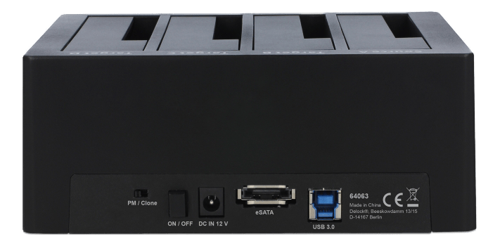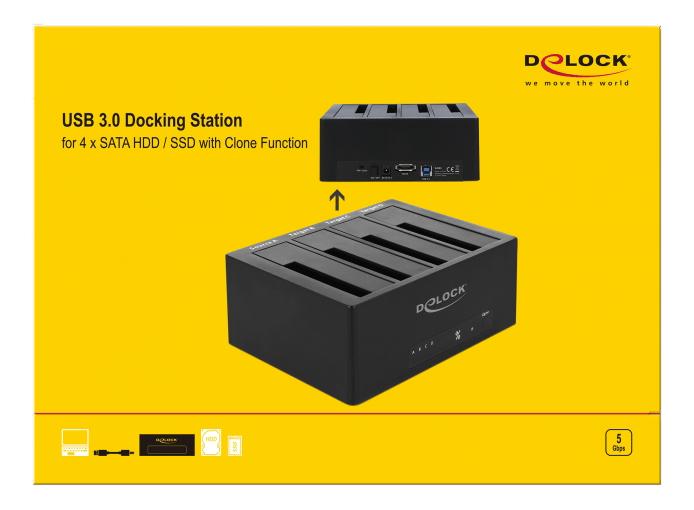 SuperSpeed USB 5 Gbps docking station til 4 x SATA HDD / SSD med kloningsfunktion.