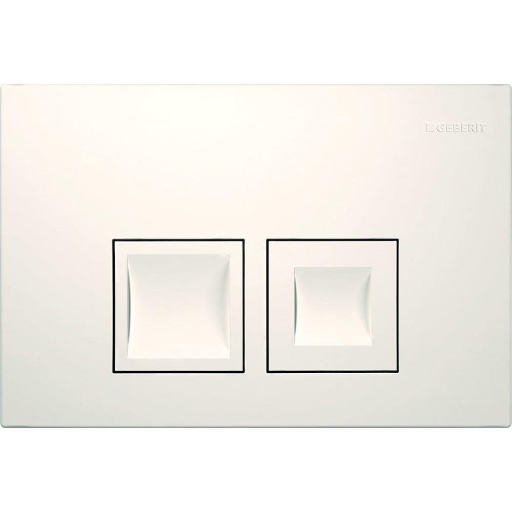 Geberit Delta25 (ex Delta35) betjeningsplade til dobbeltskyl, square: Hvid. Front betjening. Til skyllestyring på Delta indbygningscisterner.
