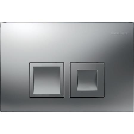 Betjeningsplade til Geberit Delta indbygningscisterner. Matforkromet, frontbetjent med dobbeltskyl.