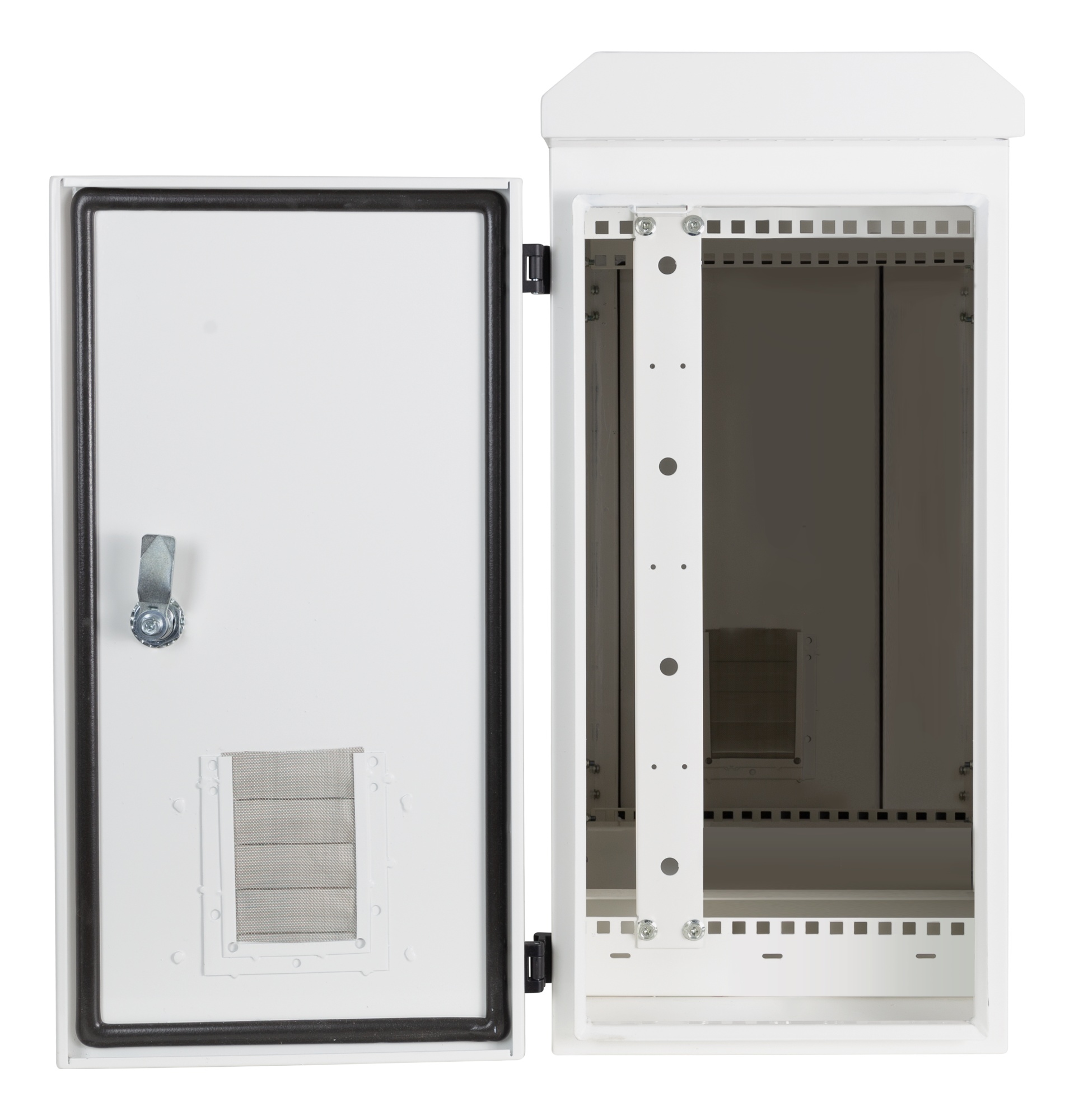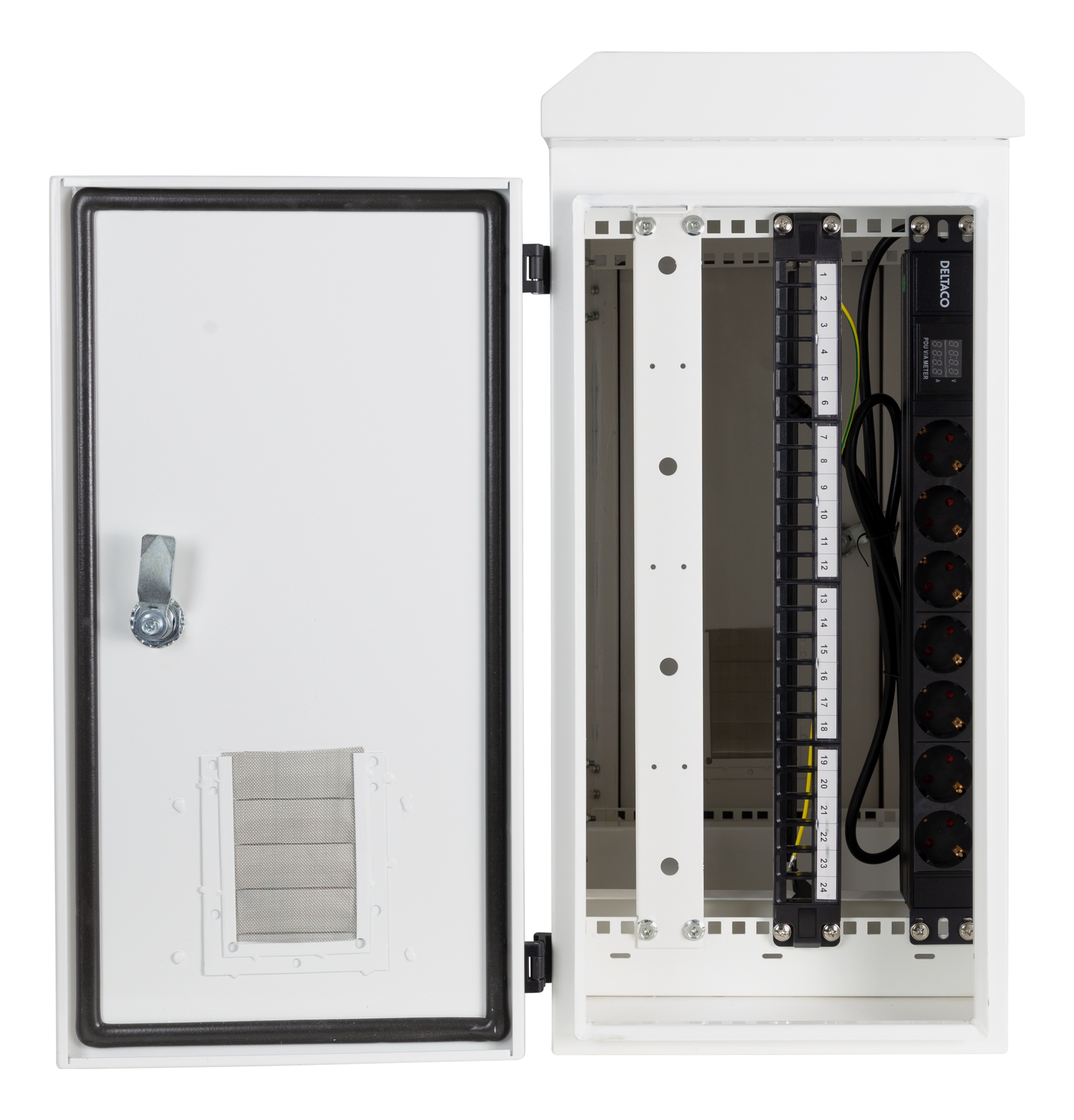 Med en praktisk sideindgang kan du nemt tilpasse kabinettet til dine behov og få mest muligt ud af den tilgængelige plads. Den robuste konstruktion sikrer, at dit udstyr er sikkert og beskyttet.