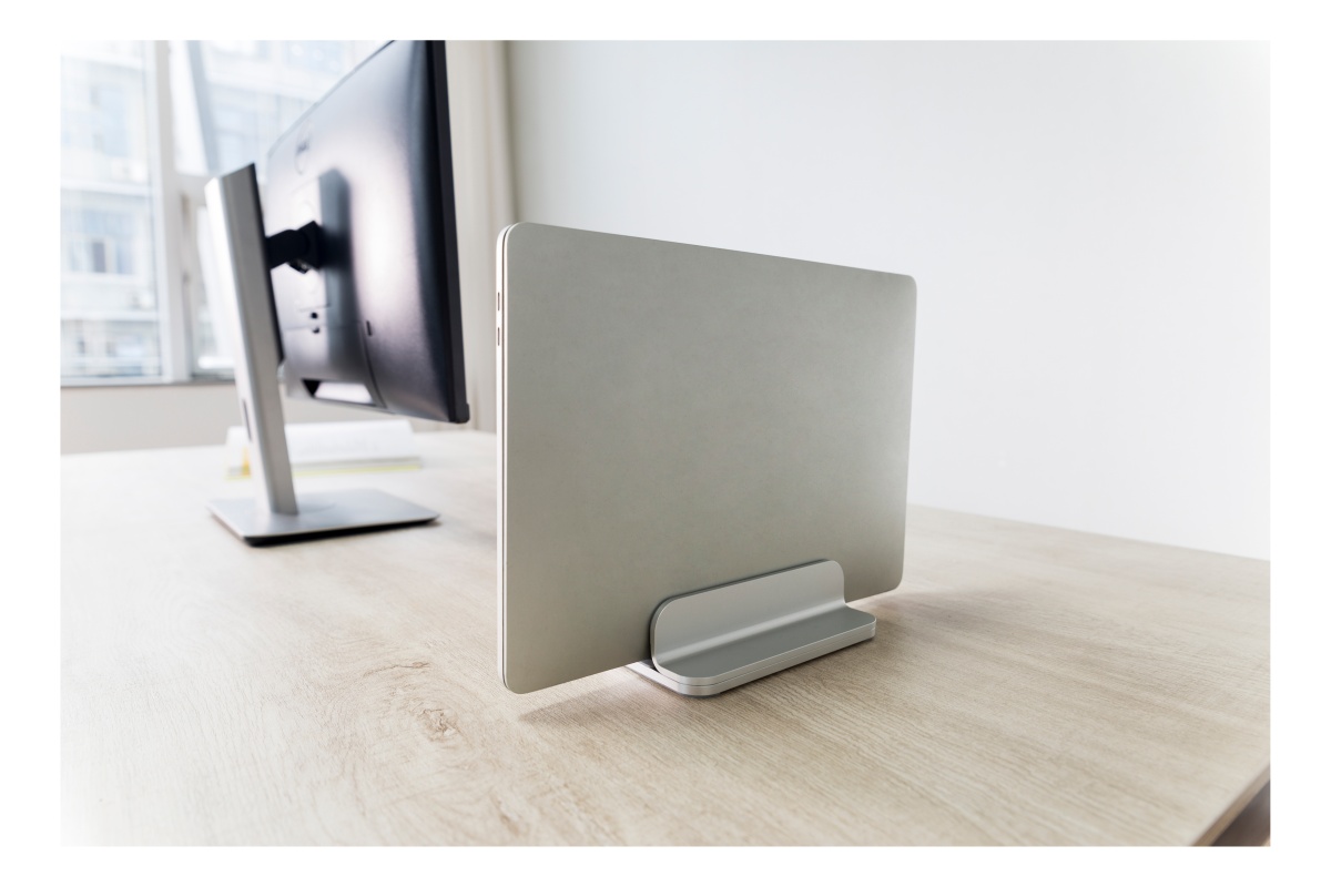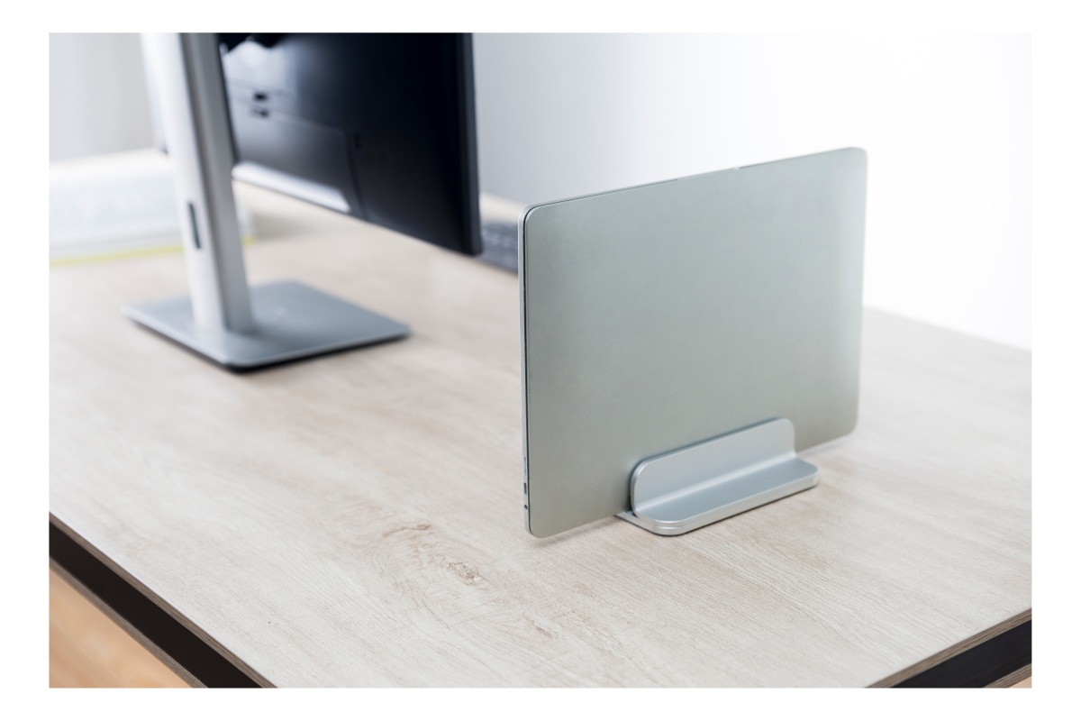 Få orden på dit skrivebord med denne justerbare vertikale laptop holder, ARM-0532. Den er designet til at spare plads og er fremstillet af holdbart aluminium med beskyttende silikonepuder.