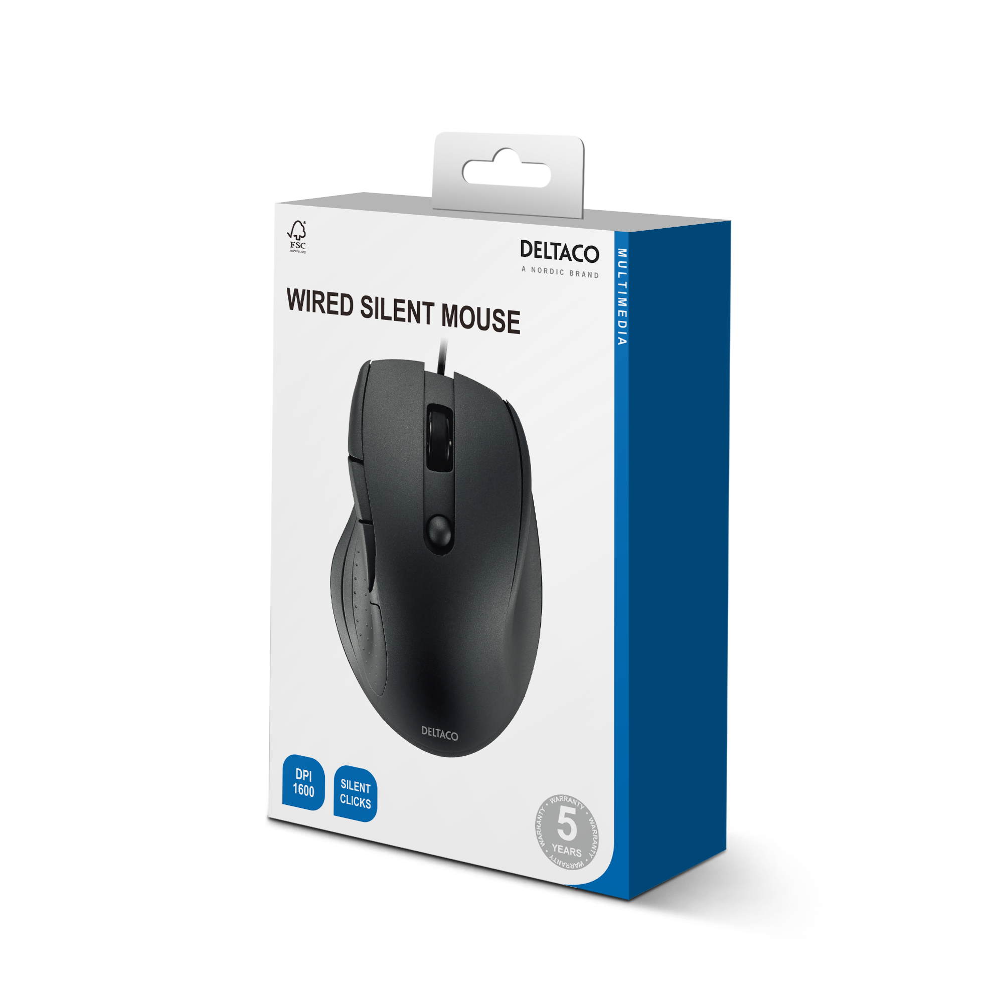 Silent Wired Office mus, 5 knapper, 600-1600 DPI, sort