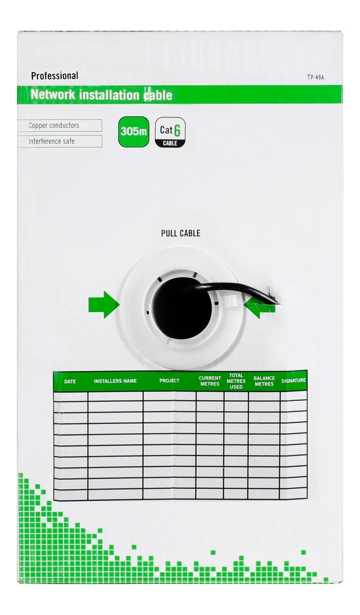 DELTACO U/UTP Cat6 installation cable, for outdoor use, 305m barrel, 250MHz, Delta-certified, black Installation cable with solid conductors. The cable jacket is made o...