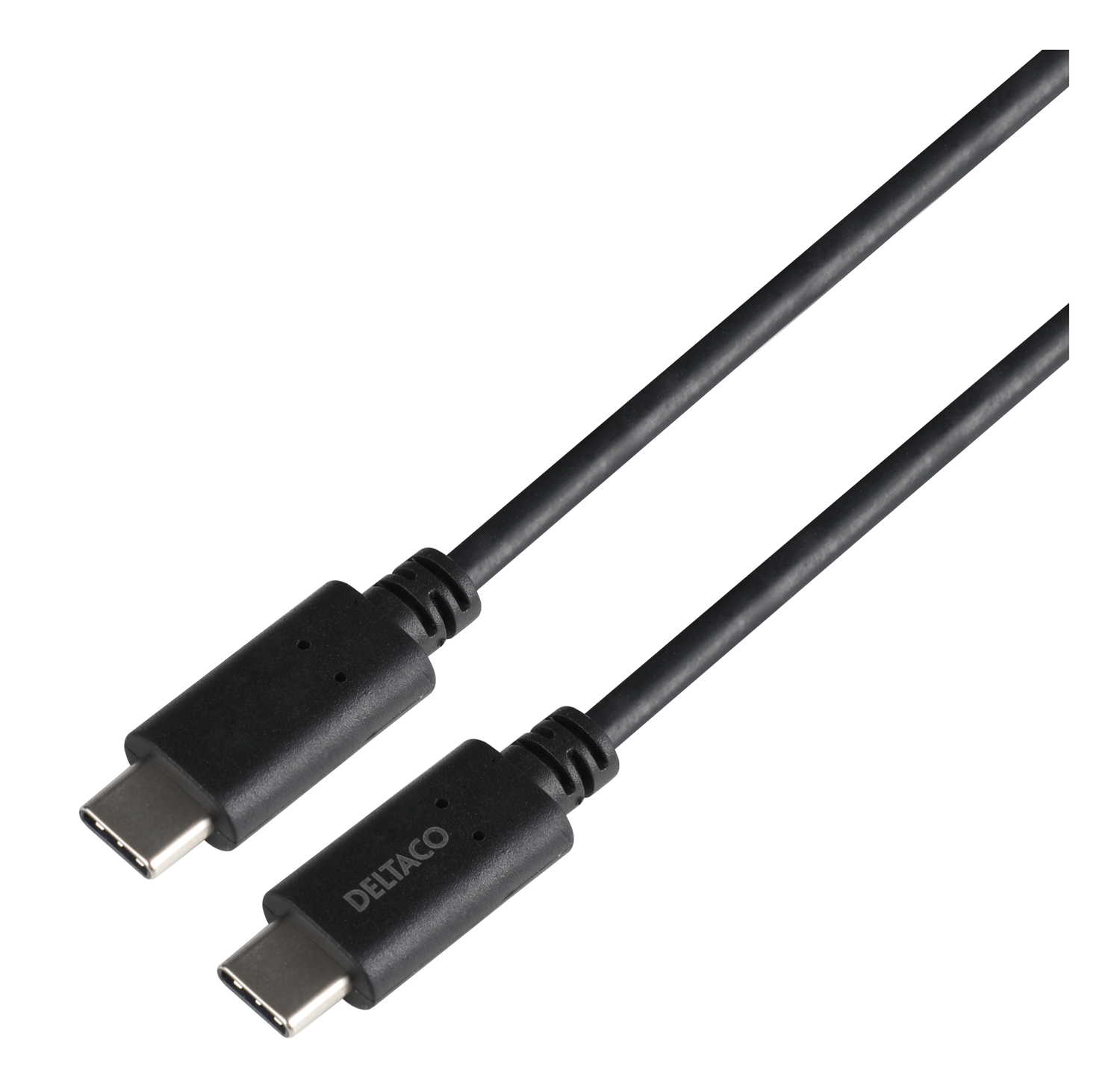 Usb-C kabel til at forbinde en Usb-C enhed til en strømkilde eller en anden Usb-C enhed. Materialet i kablet er fri for PVC-plastik, hvilket betyder, at der ikke frigives halogengas i tilfælde af brand.