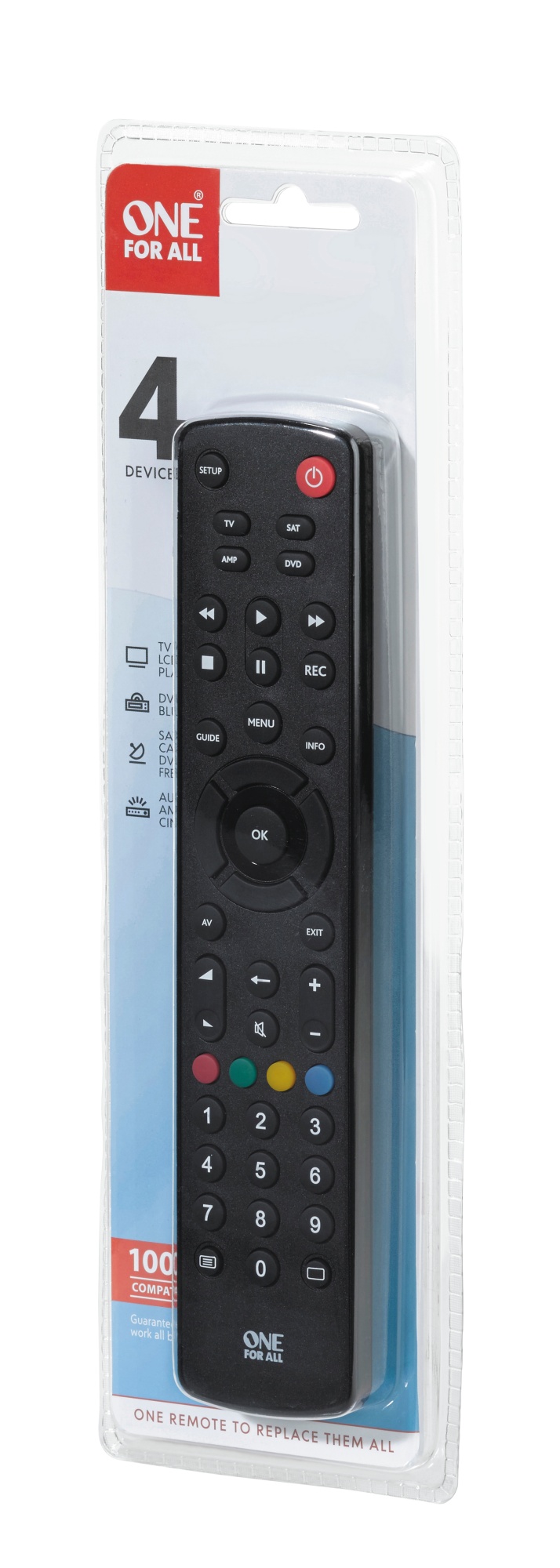 Denne fjernbetjening er kompatibel med mere end 1500 forskellige mærker, hvilket sikrer en bred dækning og mulighed for at styre en lang række enheder fra ét centralt punkt.
