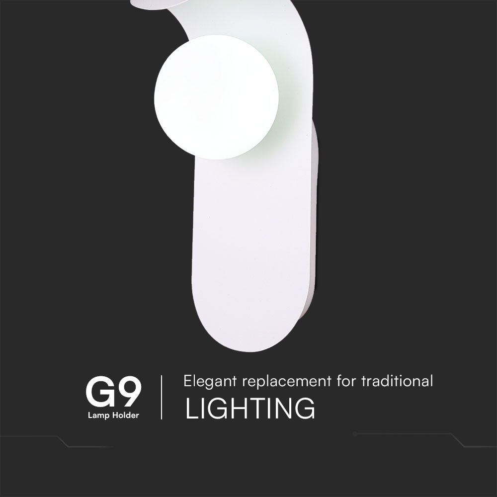 Elegant G9 væglampe i hvid gips. Perfekt til indendørs brug med IP20 klassifikation. Mål: 95x250x120mm.