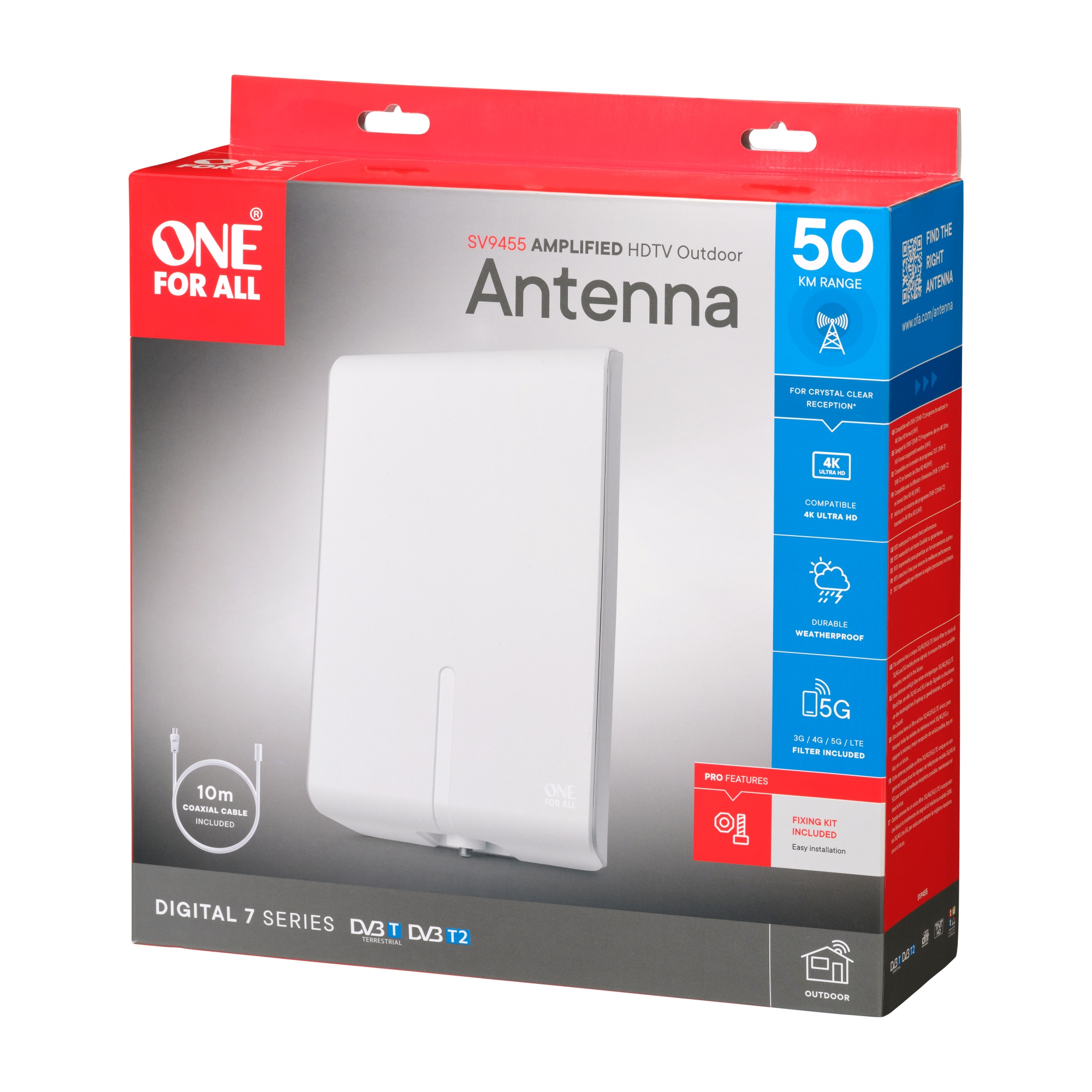 Robust udendørs antenne til modtagelse af 4K Ultra HD TV-kanaler (DVB-T/T2). Med 5G-filter for interferensfri modtagelse og 100% vandtæt design.