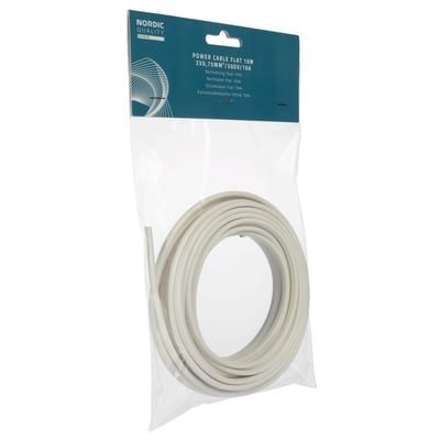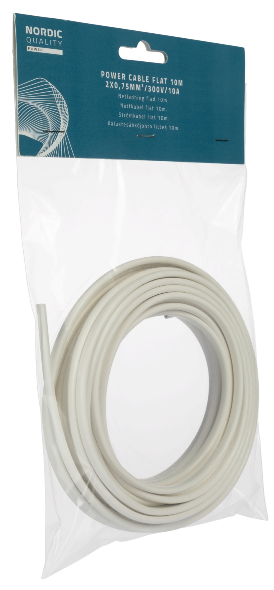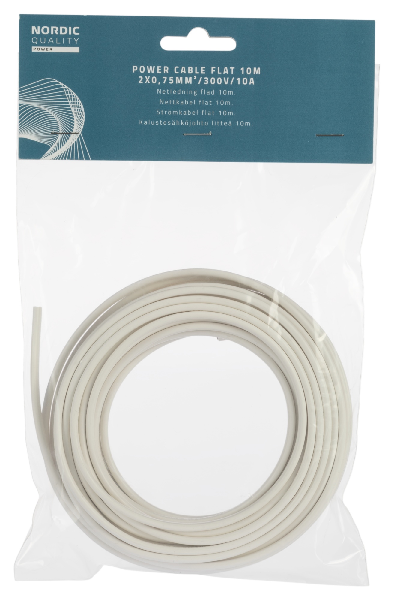 Oval ledning, H03VVH2-F, ideel til indendørs brug som tilslutningskabel til belysning. Let, blyfri og PVC-isoleret. 2 x 0,75 mm², 10 meter, hvid.