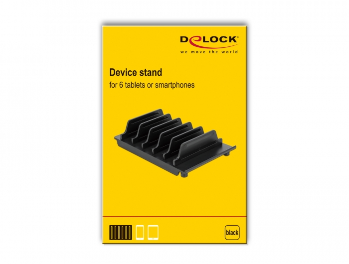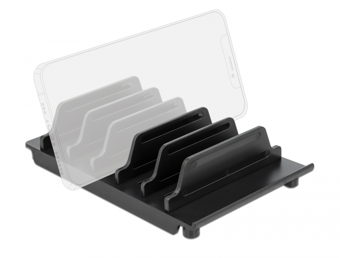Denne holder fra Delock giver en fremragende mulighed for at placere op til 6 forskellige enheder, f.eks. tablets eller smartphones samtidigt. Den fungerer som en praktisk opbevaringsplads, især når enhederne oplades.