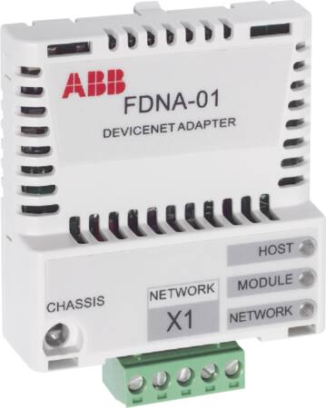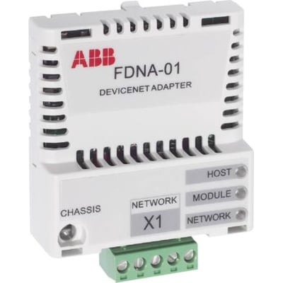 Denne Devicenet adapter, model FDNA-01, er en essentiel option til ABB frekvensomformere. Den muliggør problemfri integration af frekvensomformeren i et Devicenet feltbusnetværk.