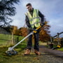 18V XR græstrimmer med højeffektiv kulløs motor, der leverer op til 40 minutters driftstid. Med 36 cm skærbredde, afbalanceret design og foldeskaft for nem opbevaring og transport.