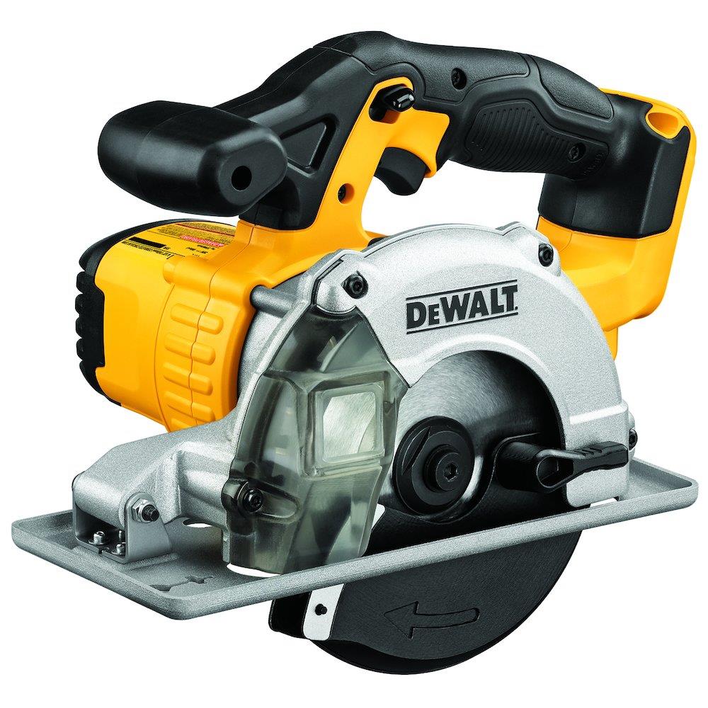 DeWalt 18V metalrundsav med 43 mm skæredybde, designet med ergonomisk gummibeklædt håndtag for optimal komfort og en robust stålsko, der tåler hårde arbejdsvilkår.