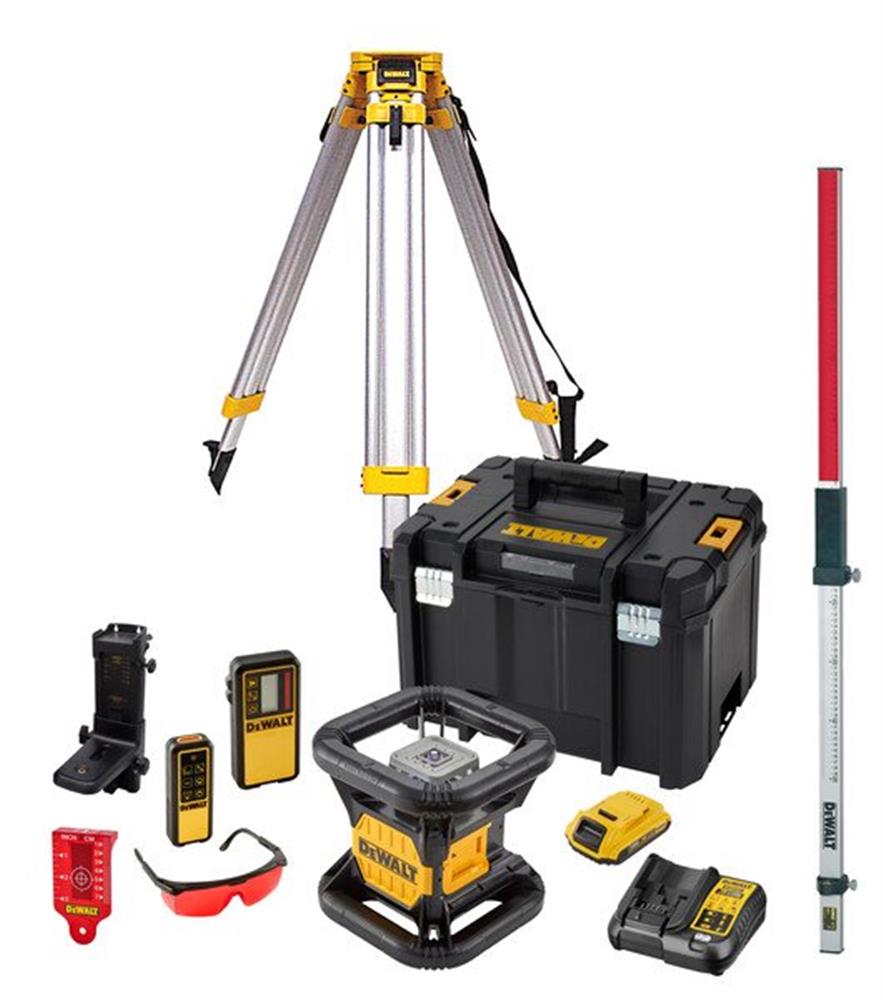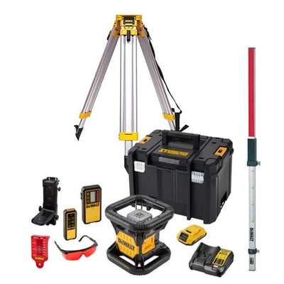 Sættet inkluderer et 2,0Ah 18V XR batteri, hvilket sikrer lang driftstid og maksimal fleksibilitet uden behov for ledninger. Det medfølgende tilbehør gør det muligt at starte arbejdet med det samme. Rotationslaseren er designet med intuitive kontroller for nem betjening og er bygget til at modstå hårde forhold på byggepladsen, hvilket garanterer pålidelig præcision hver gang.