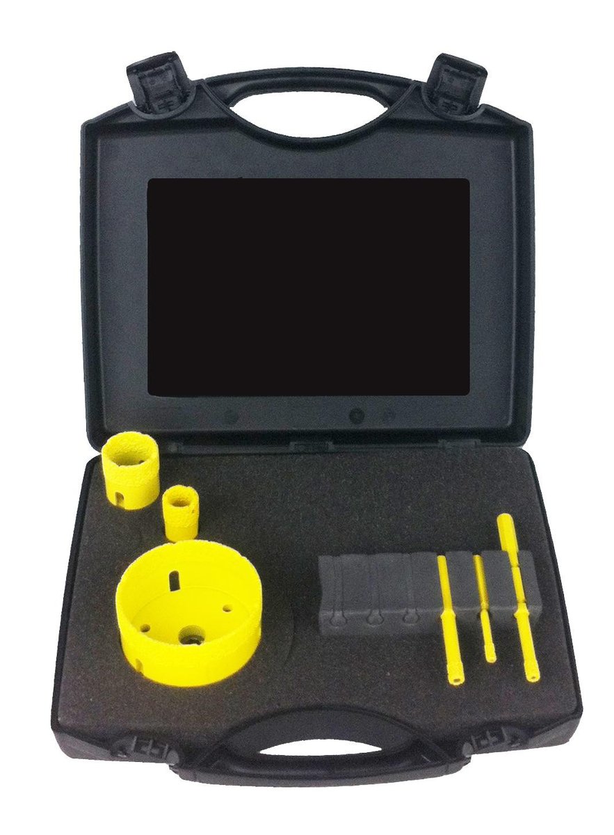 Dette ProFit diamanthulsavsæt indeholder seks dele og dækker et bredt spektrum af hulstørrelser fra 5 til 76 mm. Det er designet til at levere præcise og rene huller i en række forskellige materialer.