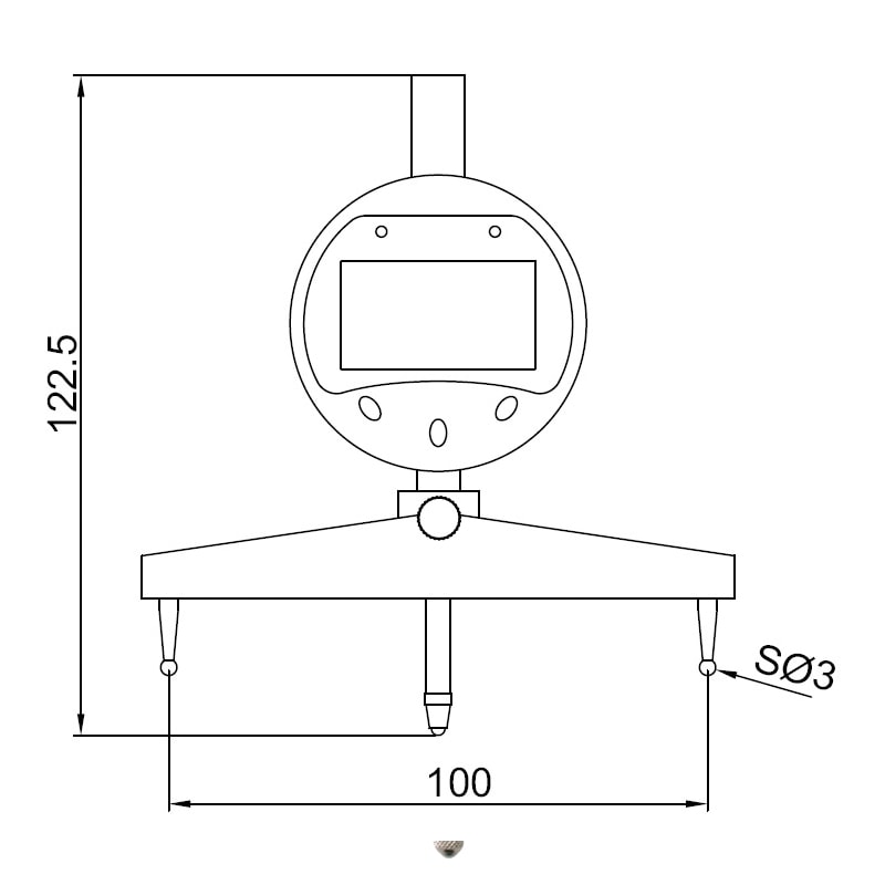Digital radiusmåler til måling af ind- og udvendige rundinger. Leveres med 5 målebroer (10 mm, 20 mm, 30 mm, 60 mm og 100 mm).