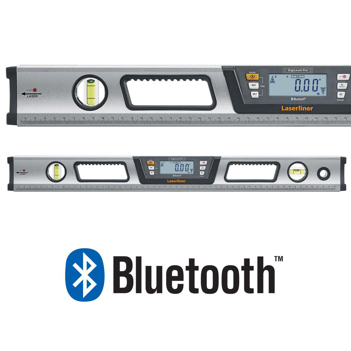 Digitalt vaterpas med indbygget laser. Overfør vinkler og højder via Bluetooth. Akustisk signal ved 0°, 45°, 90°, 135°, 180°.