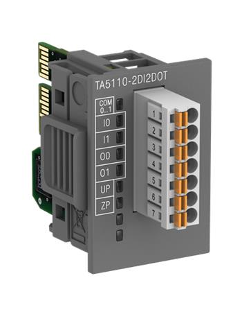 TA5110-2DI2DOT: Digital I/O option board med 2 digitale indgange og 2 digitale udgange. 24 VDC, 0,5A.