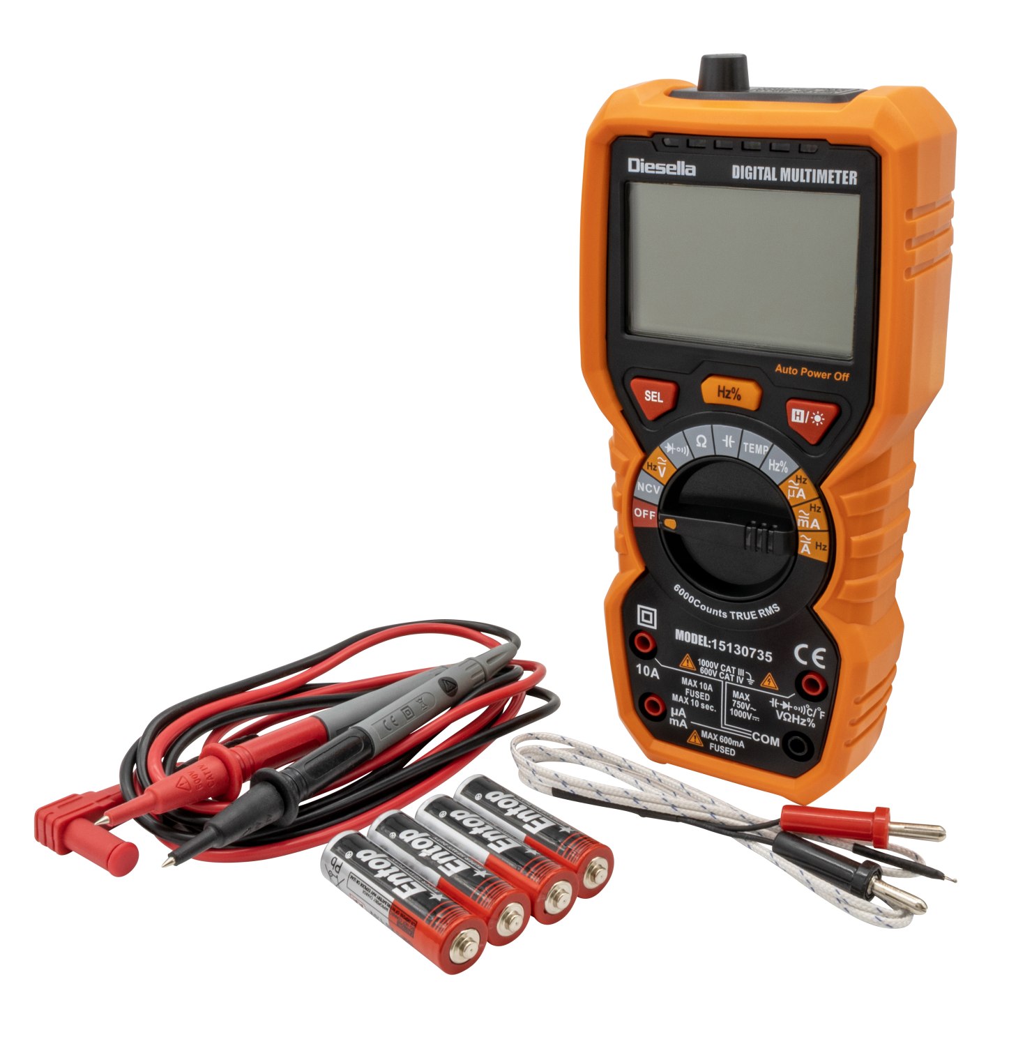 Digital multimeter med Sand RMS, 1000V/10A og gummikappe - Diesella