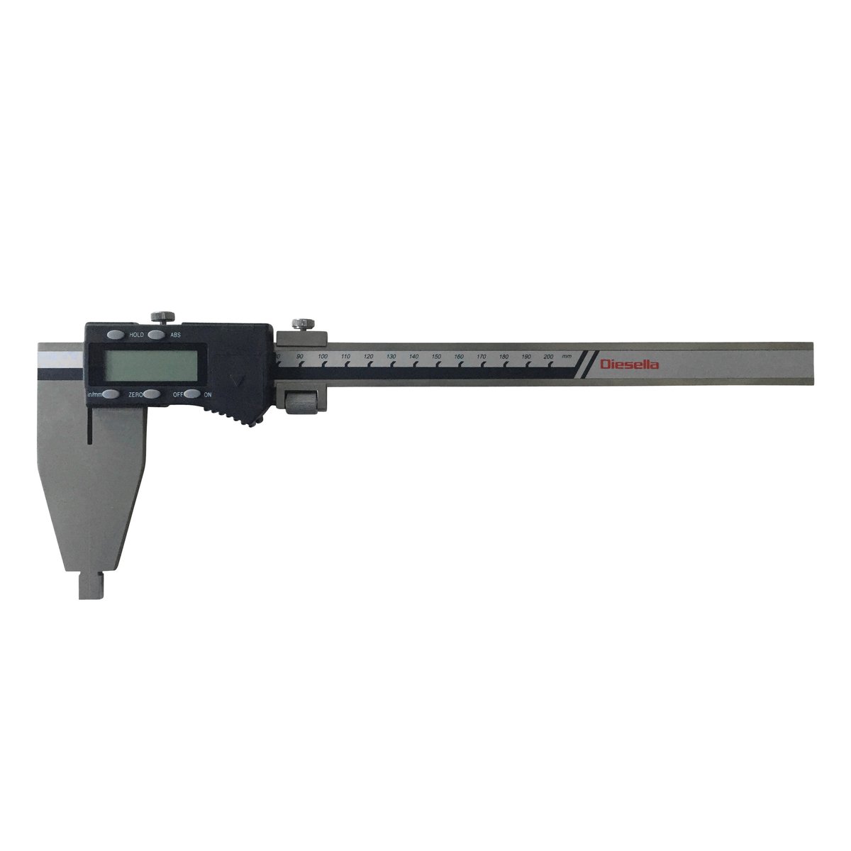 Denne digitale skydelære er udført i høj værkstedskvalitet og udstyret med ABS-system. Den måler fra 0-200 mm med en præcis aflæsning på 0,01 mm og har en kæbelængde på 90 mm.