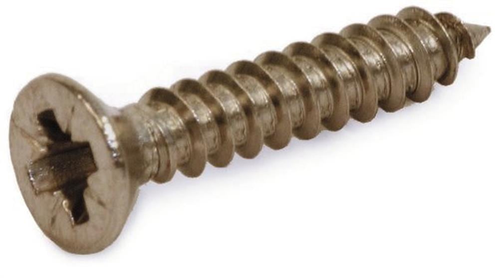 Pladeskrue DIN 7982 med undersænket hoved (UH) og Pozidrive kærv. Syrefast (A4) udførelse.