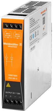 Diodemodul PRO DM 10 med skrueterminaler. Input: 0.18 - 6 mm², DC Indgangsspænding: 0...60 V DC, Indgangsstrøm: 2 x 12 A. Output: Udgangsspænding: VIN-typ. 0.7 V, Udgangsstrøm: 1 x 24 A.