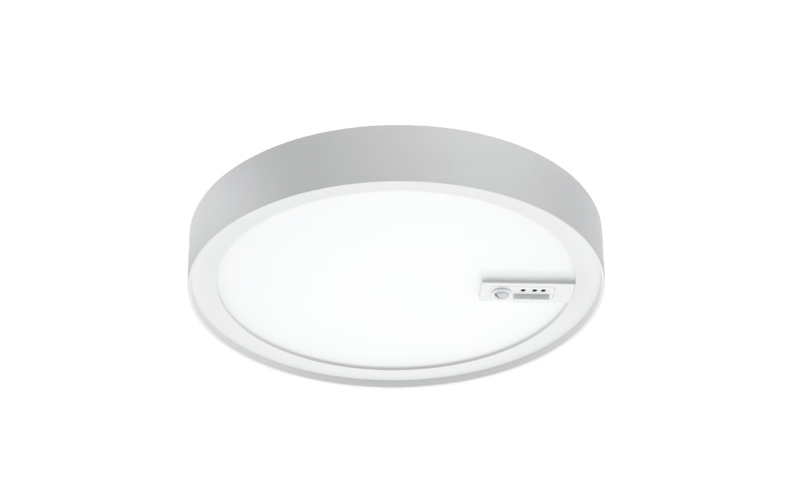 Disc 290 Connect med trådløs SG Connect-sensor, der diskret er placeret langs kanten. Sensoren tænder lyset ved bevægelse og slukker efter et defineret tidsrum, hvilket bidrager til energibesparelser.