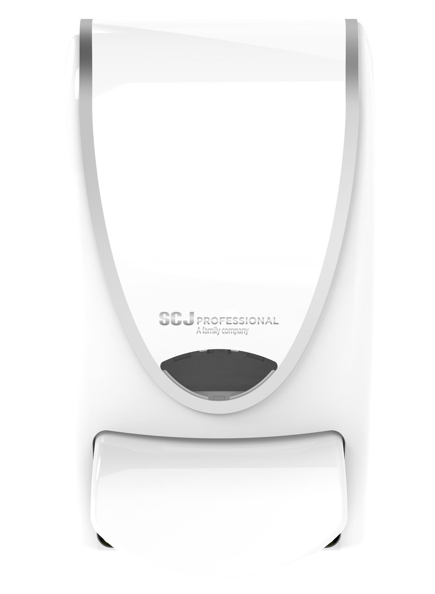 Multifunktionel 1 liters dispenser i hvid med silverline. Passer til alle 1 liters patroner. Nem betjening og økonomisk dosering sikrer minimalt spild.