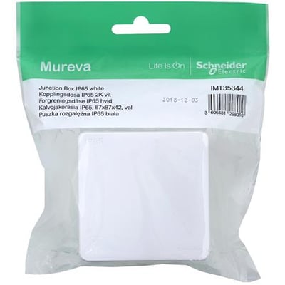 Denne hvide Mureva forgreningsdåse fra Schneider Electric er designet til at modstå selv de mest krævende miljøer. Med en IP65-klassificering er den beskyttet mod støv og vand.