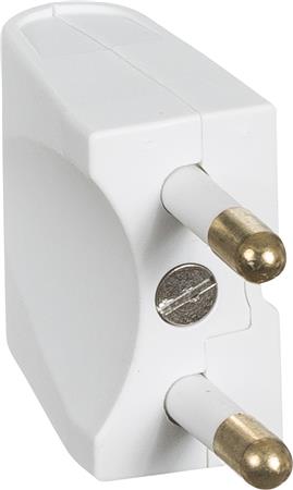 Flad hanstik uden jord til montering på ledning. Passer til runde hunstik. 250V, 16 Amp.