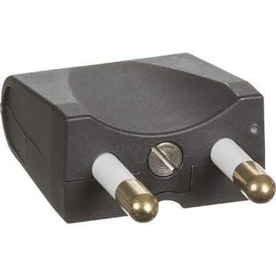Hanstik 250V fladt, uden jord. Belastning: 16 Amp. Materiale: Slagfast nylon.