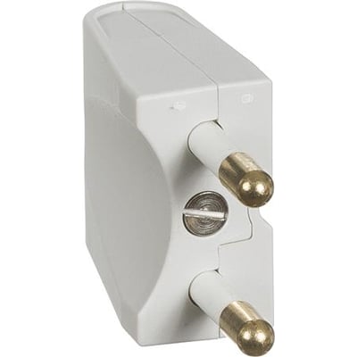 Hanstik 250V flad, uden jord. Anvendes til montage på ledning og passer til runde hunstik. Belastning: 16 Amp.
